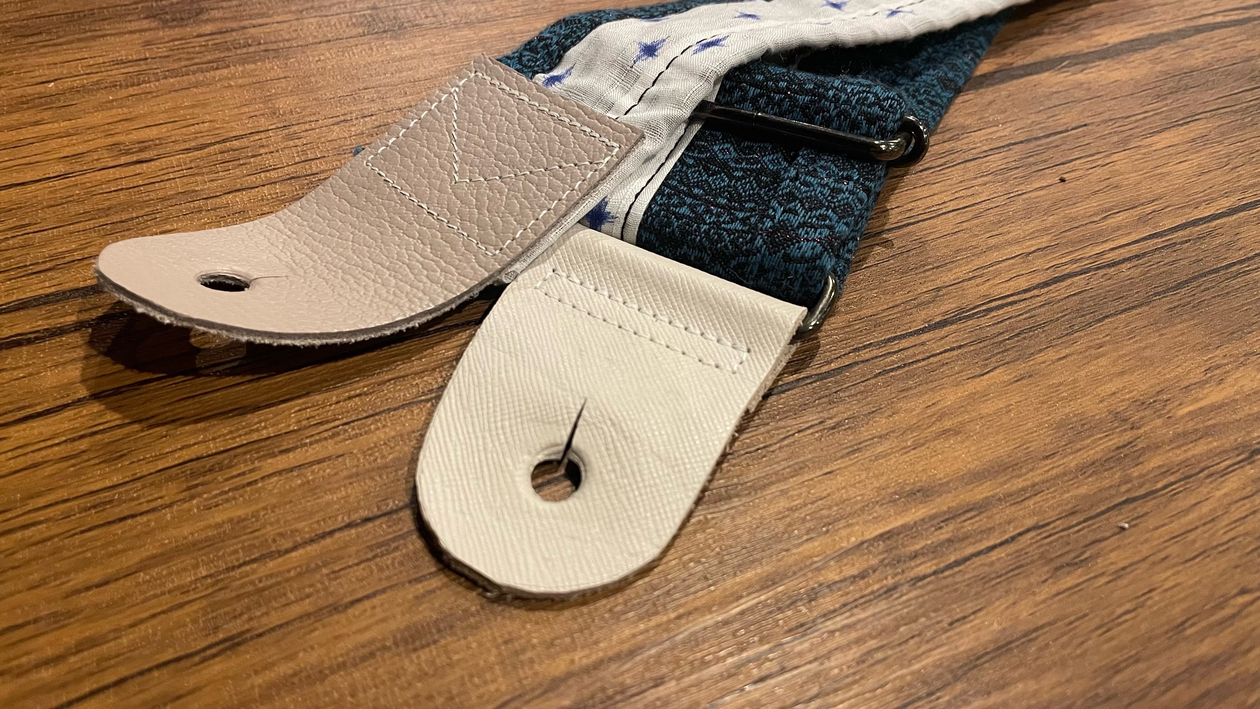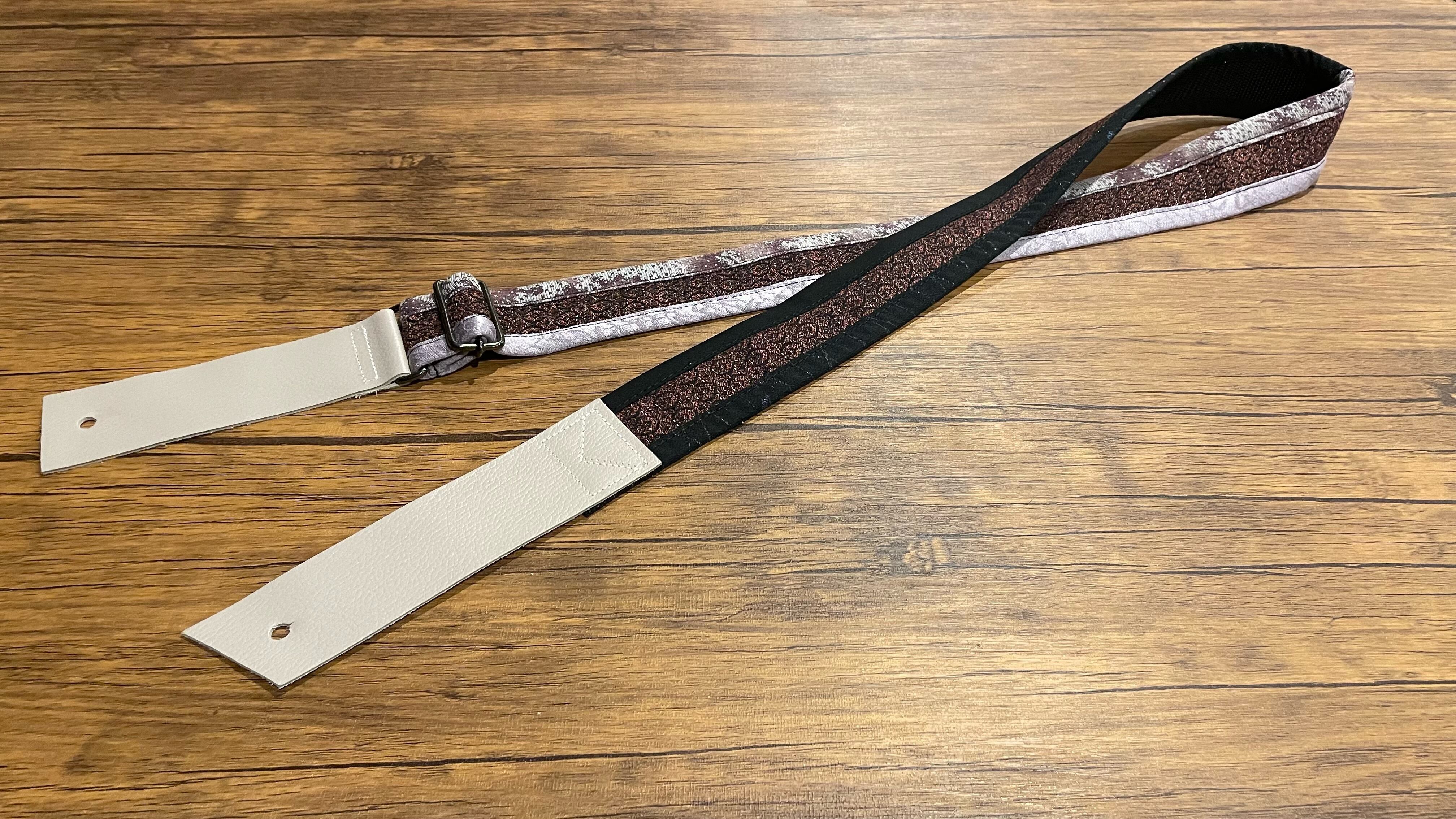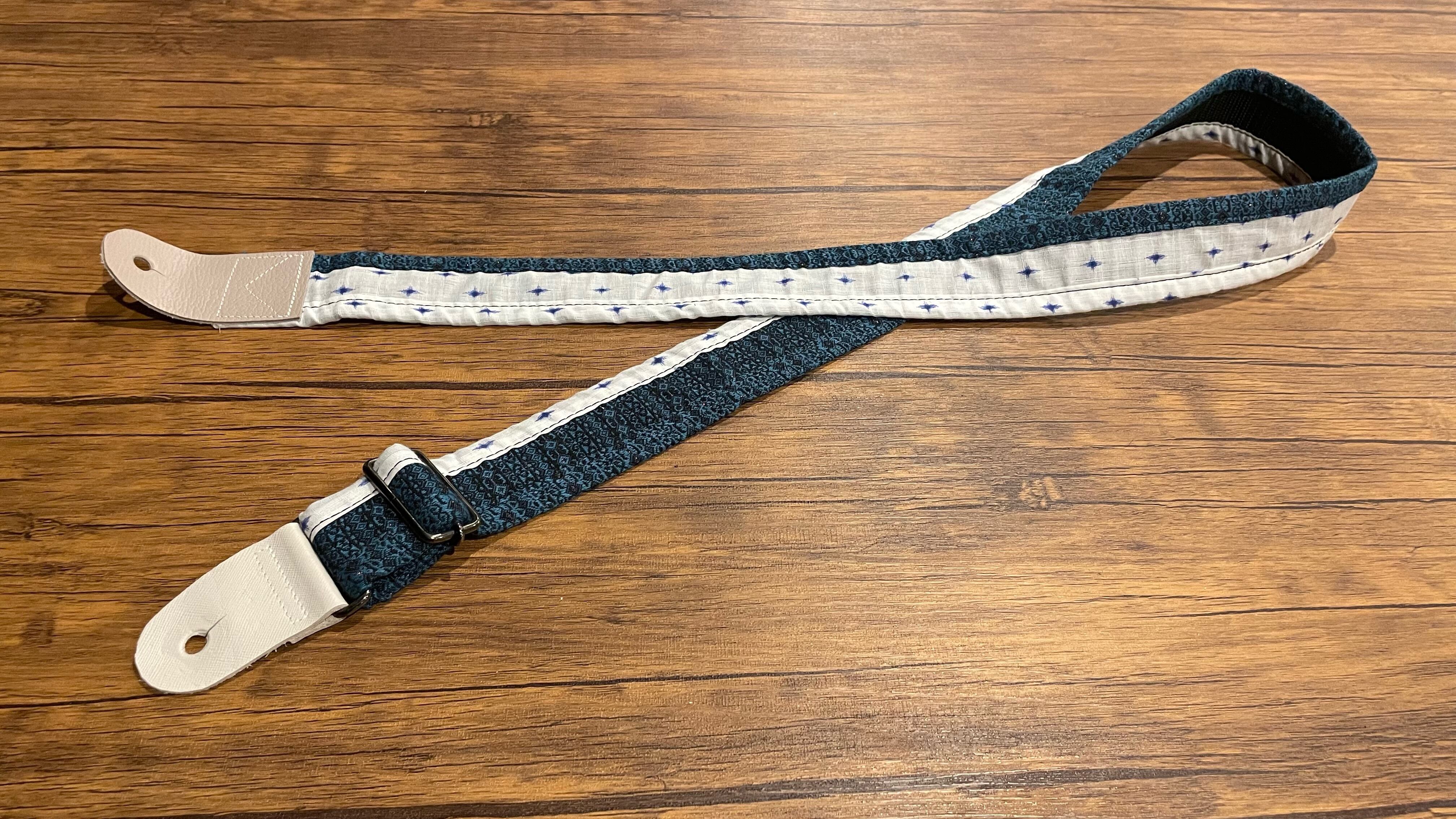 そんな中、地域に伝わる着物や古布などを引き取る機会が増え、うまく音楽と絡めた新しい再生利用価値の可能性を着想、ギターのストラップとして再生する企画を発案しました。
